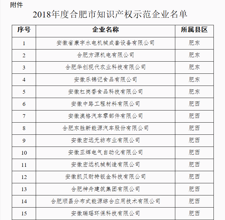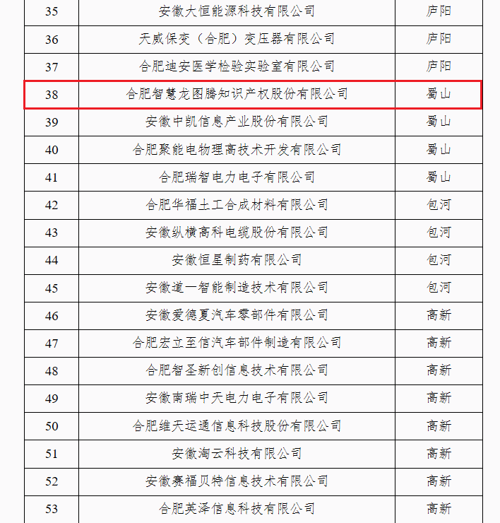 买专利卖专利找龙图腾,真高效! 查专利查商标用IPTOP,全免费!专利年费监控用IP管家,真方便! 关于确定2018年度合肥市知识产权示范企业的通知