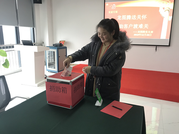 经公司领导层决定,给予合作伙伴陈小勇5000元的业务费用免单,并组织内部员工进行捐款,给客户送上一份龙图腾大家庭的关爱和温暖。