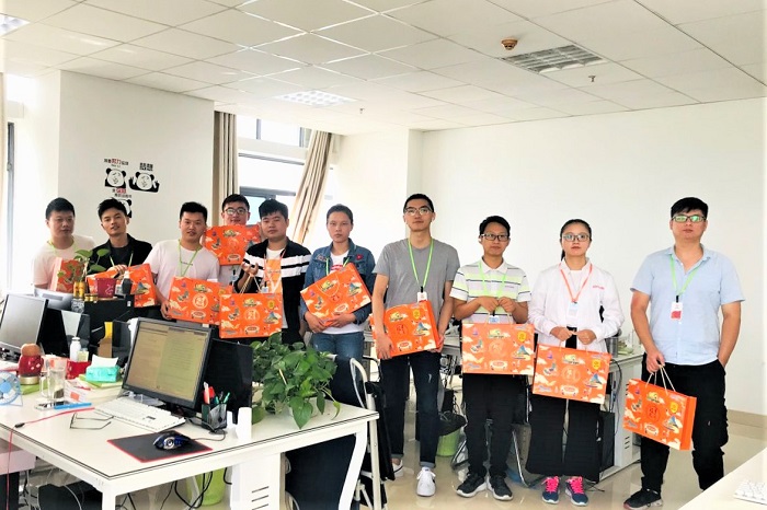 手中的月饼不仅是公司的一份心意, 更包含了龙图腾对每一位“龙精灵”的关爱和祝福。