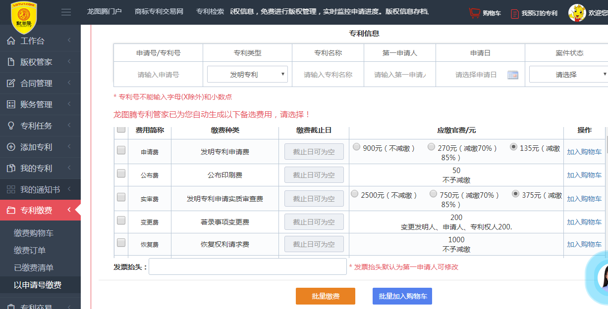 龙图腾专利管家http://g.lotut.com的过人之处之三——缴费方便