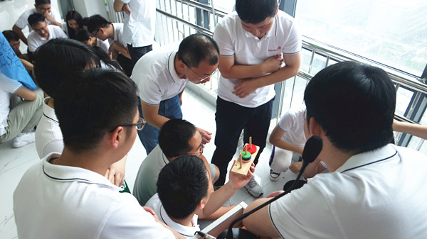 在教练的带领下,我们分别进行了汉诺塔牌挑战、驿站传书、挑战150秒、全员过硫酸河等活动项目。汉诺塔牌挑战要求团队找对方法,全员合作。驿站传书,要求我们在不触犯规则的基础上,勇于创新,跳出传统思维,同时要注意细节。挑战150秒,其中包含了三个项目,密切的团队配合以及在相互信任相互鼓励才能取得好成绩。全员通过硫酸河,更让人体会到,团队合作的力量是无穷大的,一次次失败后大家不抱怨不气馁,终将完成挑战。