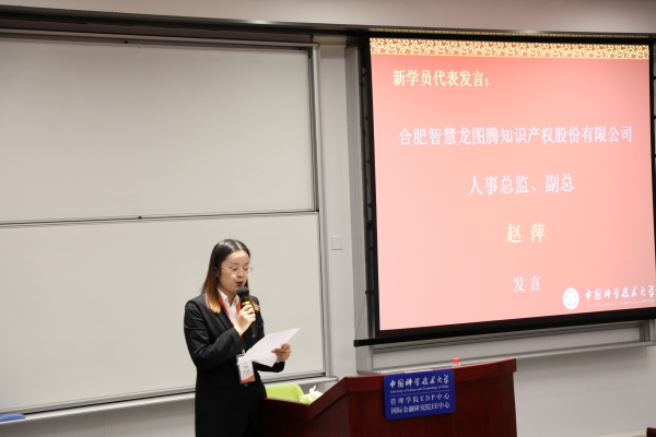 中国科大-合肥智慧龙图腾精英研修班在中国科大国际金融研究院顺利举行,中国科大国际金融研究院EE中心主任,管理学院EDP中心主任吴林出席现场对本次研修班的学员们表示热烈欢迎,同时龙图腾公司副总赵萍代表学员发表讲话,希望大家珍惜这次学习的机会,学以所用,学以所获。