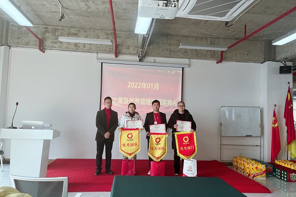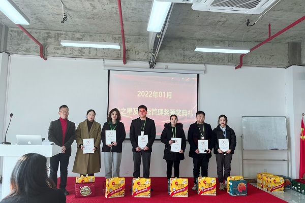为鼓励在工作中成绩优异、工作表现突出、辛勤努力的优秀员工及优秀团队,2月21日上午,龙图腾公司2022年01月份龙之星颁奖典礼分别在高新区和蜀山区办公室举行,公司董事长刘光、各部门负责人及全体员工参加了颁奖典礼。